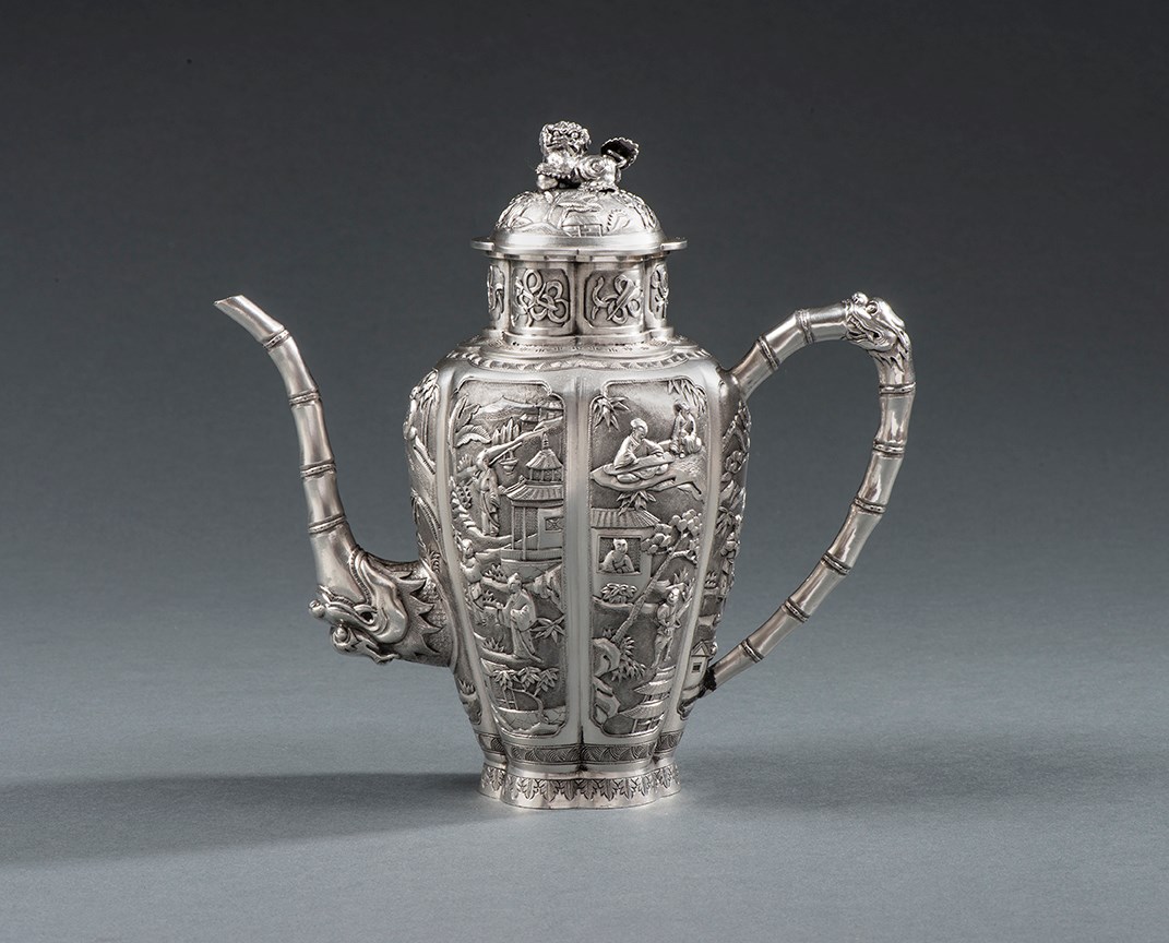 We are looking forward to exhibiting at Fine Art Asia in Hong Kong between 30th September to 3rd October at the Convention & Exhibition Centre. We wanted to preview some of our highlight pieces and provide some information and advice for collectors looking to buy Chinese Export silver. Porcelain arriving at Canton warehouse, Watercolour and ink on paper, Made in Canton circa. 1780. Courtesy of The Victoria & Albert Museum. During the 18th & 19th centuries China under the Qing Dynasty became one of the major exporter of Chinese goods through the Chinese Canton System selling tea, spices and porcelain. Historically, foreigners would trade in silver for tea, spices and other goods out of China. By 1800 the English East India Company was shipping more than 23 million pounds of tea. Cum Shing, A Chinese Export Silver 19th Century Canister. For Sale at Koopman Rare Art. Chinese export silver is normally 90% silver. It was made of Spanish dollars, the only currency the Chinese would accept for the trading of goods such as tea, silks, spices and tea. Chinese export silver between 1800-1900 was usually quite plain with some simple engraved decoration. However, in order to comply with European Victorian taste Chinese silversmiths began ornately decorating pieces with dragons, landscapes, bamboo and other iconic Chinese symbolism to keep inline with Victorian aesthetic. However, Chinese silversmiths developed their designs in accordance with taste and the growing tourism and desire to explore China. Silversmiths started introducing iconic Chinese symbolism to ornately decorate pieces of silver. Bao Chang,A 19th Century Chinese Ewer. For Sale at Koopman Rare Art. Chinese export silver is now very popular. There has been an expansion in the Chinese market for Chinese export silver buying back what was made in their homeland. Items with symbols of the dragon are particularly popular as the dragon represents the Emperor and is therefore very commercial and desirable. Chinese taste in Chinese export silver now dictates the value. There are a number of things to think about before purchasing piece of Chinese export silver. Firstly and most importantly do you love the decoration and style ? Buying a piece of silver is like buying a piece of art. You need to decide whether this is the piece that would suit your home and your collection. Does it fit in your home interior, compliment your living space and enhance your lifestyle? Chinese Six Piece Tea & Coffee Set. For Sale at Koopman Rare Art. Is the piece hallmarked, if so by who and in what condition are the hallmarks ? Chinese silver unlike British silver was not regulated and therefore pieces are not always stamped with hallmarks. There was no assay offices or other standard marks to regulate the production of silver in China. Chinese export silver is commonly marked on the base with either an English of Chinese character mark. Chinese silversmiths made up Western sounding names to use as pseudonyms. Chinese export silver is sometimes marked with Chinese characters, English letters or English pseudo hallmarks to imitate the English hallmarks. This was popular as the silver was being exported for the Western market. If you have queries about the hallmarks always feel free to ask. What is the provenance of the piece ? Items were commonly engraved with inscriptions. This can be extremely useful in determining the history of a piece. Who did it belong to ? What was their position of power ? What was the date of presentation ? What was the reason for presentation ? How old is the piece ? The mid to late 19th century was the most important period of production. Items from this period were the most ornately decorated demonstrating the technical capabilities of Chinese silversmiths. Unlike English silver older is not always better. However, this does depend on your taste. Wang Hing, A Pair of 19th Century Chinese Tazza. For Sale at Koopman Rare Art. All of these works are available to buy at Fine Art Asia 2017 in Hong Kong or please contact the gallery if you would like to make an enquiry. If you require free tickets to the event please do not hesitate to contact us. Koopman Rare Art, The London Silver Vaults, 53/64 Chancery Lane, London, WC2A 1QS For all enquiries please do not hesitate to call or email on: 020 7242 7624 / info@koopmanrareart.com