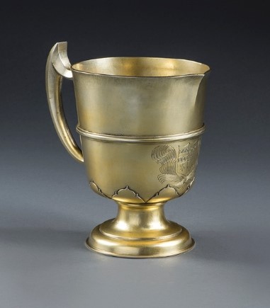 Sir James Mercer, whose London house was in Axe Yard, Westminster (where Samuel Pepys lived between August 1658 and July 1660), was appointed Gentleman usher to Charles II in January 1661. Gentlemen Ushers originally formed three classes: Gentlemen Ushers of the Privy Chamber, Gentlemen Ushers Daily Waiters, and Gentlemen Ushers Quarterly Waiters. The number of ordinary ushers of these classes were fixed at four, four, and eight, respectively, but ushers “in extraordinary” were sometimes appointed. Mercer was a Gentleman Usher Daily Waiter. John Michael Wright’s portrait of King Charles II, in the Royal Collection Legend has it that ondemned one of his grooms to be hanged for stealing a bowl of corn. The man was hanged on an old tree and with his dying breath, uttered the curse that the Mercers would have no male heirs for 19 generations. Sir James’ son Charles, godson to the king, was born and died in 1667. His sister Jean became heir to her father in 1672 but died the same year. Her sister Grizell became heir but died unmarried in 1706. Another sister, Helen, then became heir and married a cousin, Sir Laurence Mercer of Melginche. Their son James Mercer, became heir upon his mother’s death in 1720, but died the same year. His sister Jean became heiress and married Robert Murray Nairne. He was killed at the battle of Culloden as Colonel Mercer, having adopted the name. Their son, James Mercer of Aldie, became heir in 1750 but died unmarried in 1758. His brother William became heir in 1759 but he and his wife Margaret had no sons. Their daughter Jane became heir and married George Elphinstone, Viscount Keith, and they had a daughter Margaret Mercer Elphinstone, Baroness Keith and Nairne, who married Auguste Charles Joseph, Conte de Flahaut, and they only had daughters. Their daughter Emily Jane married Henry, the 4thMarquess of Lansdowne, who took the name Mercer Nairne and they had a son, the 5th Marquess of Lansdown, so the curse was finally broken. Engraving of the Coat of Arms of Mercer impaling Stewart for Sir James Mercer His only son Charles was christened in June 1667 in the presence of his godfather, the king, whose gift of 80 ounces of gilt plate to mark the event is recorded in the Jewel Office warrant books in the National Archives. Writing afterwards to his father-in-law, Mercer recalled that “His Majesty on the occasion was very jovial, without any sort of drinking”. This elegant ewer was part of that royal gift. The ewer on pedestal foot, the body engraved with a coat-of-arms within a plume cartouche above cut-card trefoils, hard-shaped handle. Silver-gilt, London circa 1667. Maker’s mark “HW”, an escallop below for Henry Welch. The same maker’s mark has been recorded on an otherwise unmarked Charles II silver two-handled porringer and cover of about 1670, engraved with the arms of Ralph Cotton of Bellaport, co. Salop and Newcastle-under-Lyme, which was sold at Sotheby’s, London, on 24 March 1960, lot 40.