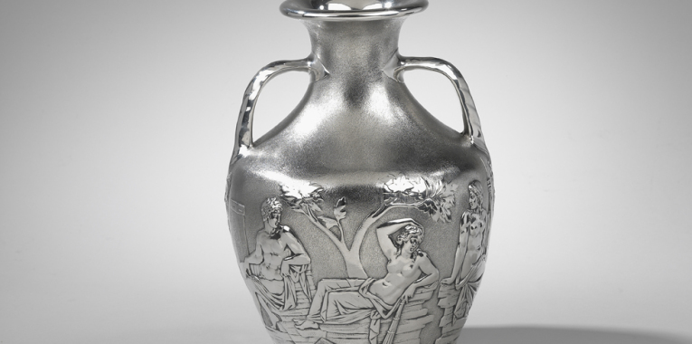 Artefacts from classical antiquity have always fascinated man. In the 18th century this fascination grew ever stronger. A movement coined neo-classicism spread through the arts, literature, theatre, music and architecture. One of the reason Neo-classicism rose to prominence was because of the establishment of formal archaeology and excavations. From 1730s onwards towns such as Pompeii and Herculaneum were turned into archaeological sites. David Allan, Sir William Hamilton, Oil on canvas. Courtesy of The National Portrait Gallery. One of the most famous antiquarians was Sir William Hamilton, who bought The Warwick Vase from Gavin Hamilton. Sir William Hamilton accrued an extensive and impressive collection of art and artefacts including The Portland Vase. The Portland Vase, Roman Circa. AD 1-AD 25. Courtesy of The British Museum. The Portland Vase was supposedly excavated back in 1582 discovered by Fabrizio Lazzaro in the sarcophagus of the Emperor Alexander Severus at Monte del Grano near Rome. The Portland Vase is a Roman cameo violet-blue glass vase dated between AD 1 and AD 25. Surrounded by a single continuous white glass cameo depicting seven figures with a large snake with two bearded and horned heads below the handles. The figures around the sides of the vase are thought to depict the story of the marriage of Peleus and Thetis (D. E. L. Haynes, The Portland Vase, 1975, pp. 16-20) although there have been many interpretations of the figures. The vase was first recorded in 1601 by the French scholar Nicolas Claude Fabri de Peiresc to the painter Peter Paul Rubens. Within the letter it stated that the Portland Vase was in the collection of Cardinal Francesco Maria del Monte in Italy. The dark blue glass Portland Vase is now thought to be the upper section of a taller amphora-shaped vessel the bottom of which must have been broken off and the circular unrelated disc inserted at a later date. It changed hands on a number of occasions until in about 1780 it was acquired by the antiquarian James Byres in Rome. He in turn sold it to Sir William Hamilton, British Ambassador to the Court of Naples, who was also to purchase the Warwick Vase, who brought it to London in 1783. After Michael Dahl I, Dowager Duchess of Portland, Oil on canvas. Courtesy of Hardwick Hall, National Trust. He sold it in the following year for 1,800 guineas to the Dowager Duchess of Portland for her museum of natural and artificial curiosities. On her death in 1785 it was acquired at auction by William, 3rd Duke of Portland and in 1810 was deposited at the British Museum for safekeeping by 4th Duke of Portland. In 1845 it was smashed into over two hundred pieces by William Lloyd although it was successfully restored. It was finally acquired by the British Museum in 1945. Despite its great beauty the form did not lend itself to adaptation to a number of purposes in the same way as the ubiquitous Warwick Vase. Only a few of the vases which were fitted as wine coolers were produced by the Rundell between 1820 and 1824. The upper section could be removed to allow a bottle to be placed in the bowl; the vase can be inverted without any water leaking out. The Duke lent the vase to Josiah Wedgwood who spent four years trying to duplicate the vase in black and whit jasper ware. Josiah Wedgwood Factory, The Portland Vase, Jasper. Courtesy of the Victoria & Albert Museum. At Koopman Rare Art we have for sale a silver Portland Vase made by John Samuel Hunt. Hunt had assisted Storr from the start of his career in 1819. The silver vessel is a technical masterpiece and a wonderfully satisfying object with great subtleties in the textures and finish of the surfaces. The vase is an important piece of silver as it encapsulates the importance of classical antiquity and the influences it had on craftsman. The vase was made in 1846 and is inscribed to the rim ‘Presented by Lady Caroline Lascelles to James N. Merrinan, 2nd July 1851’. John Samuel Hunt, A Victorian silver Portland Vase. Available at Koopman Rare Art. Some of these works are available to view in our gallery located at Koopman Rare Art, The London Silver Vaults, 53/64 Chancery Lane, London, WC2A 1QS. For all enquiries please do not hesitate to call or email on: 020 7242 7624 / info@koopmanrareart.com