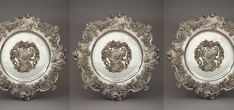 In the second decade of the 19th century the taste for naturalistic ornament gathered speed. Nostalgia for the previous asymmetrical continuous movement and vision of Meissonnier and the rococo period, once more rose to the height of fashion. Casting was such an important element and works were inspired from originals by Crespin and Lamerie of the 1730’s and 1740’s and given a new lease of life with superb chasing. These salt cellars made in 1835 by Paul Storr for the famous Pembroke service capture this moment in time perfectly. The cast elements such as the beautifully modelled putti have such amazing detail in their faces, feet and hands and the fluidity of design capturing the rococo feel is perfect. The chasing in the diaper-work and rosettes gives these salts lively character offset by the pearls symbolising Venus and the love of dining. They are my Director’s Choice this week.