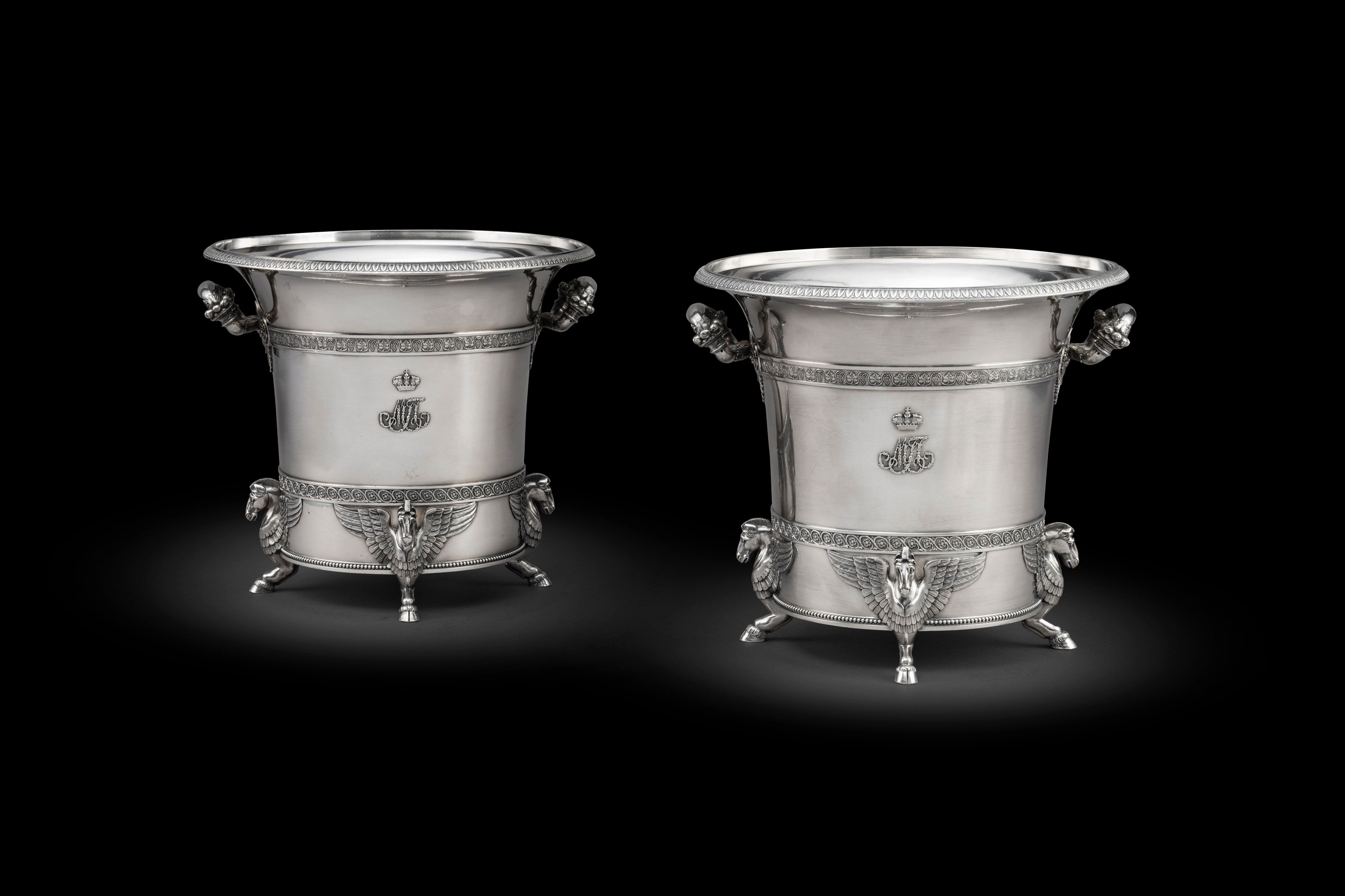 These spectacular French Wine Coolers formed part of the magnificent and important dinner service commissioned by the Grand Duke Mikhail Pavlovich. They capture Fontaine and Percier’s designs in their perfect harmony of neo-classical elements alongside Egyptian architecture, presenting the perfect frame for the Duke’s coronet and joined cyphers. French Empire at it’s very best and we are proud to present this week’s Director’s choice.