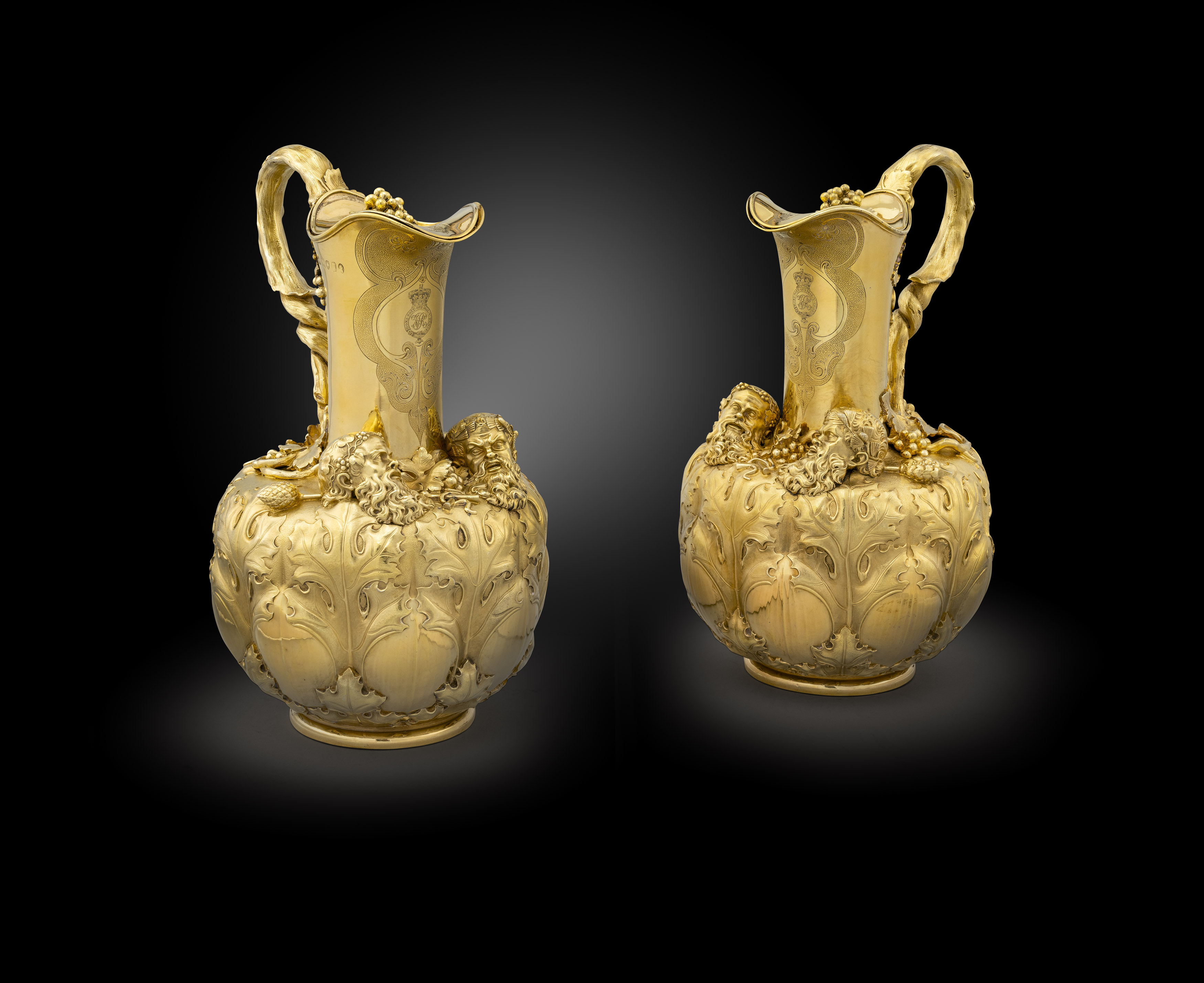 Director’s Choice – Timo Koopman A Monumental George III Warwick Vase The detail and size of this Warwick Vase is exceptional. It is one of the earliest and largest examples known in silver. This commission pushes the boundaries of what is achievable and is an incredible triumph of the goldsmith. Measuring fifty-six centimetres or twenty-two inches in height, it weighs an astonishing 13,220 grammes or 425 troy ounces and 1 penny weight of silver. The vase has two large handles formed as interwoven vine branches, from which the tendrils, leaves, and clustering grapes spread around the upper margin and features classical Bacchic masks and associated emblems, such as the pine tip staff or thyrsus. The middle of the body encompasses the pelt of a panther, with head and claws, the cloak worn by Bacchus. Above are heads, all representing satyrs, except one, which is that of a female, traditionally said to have been substituted for a missing head and made by an Italian carver in the 18th century into the likeness of lady Hamilton; however, as the result of a supposed quarrel with her, the carver gave lady Hamilton’s head a fawn's ear. This monumental triumph rests on a square pedestal foot.