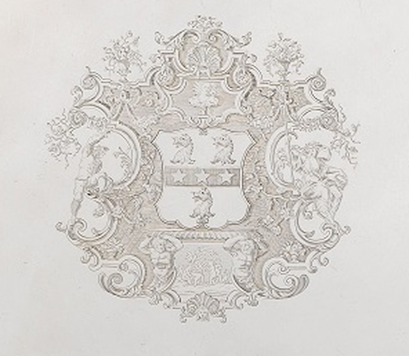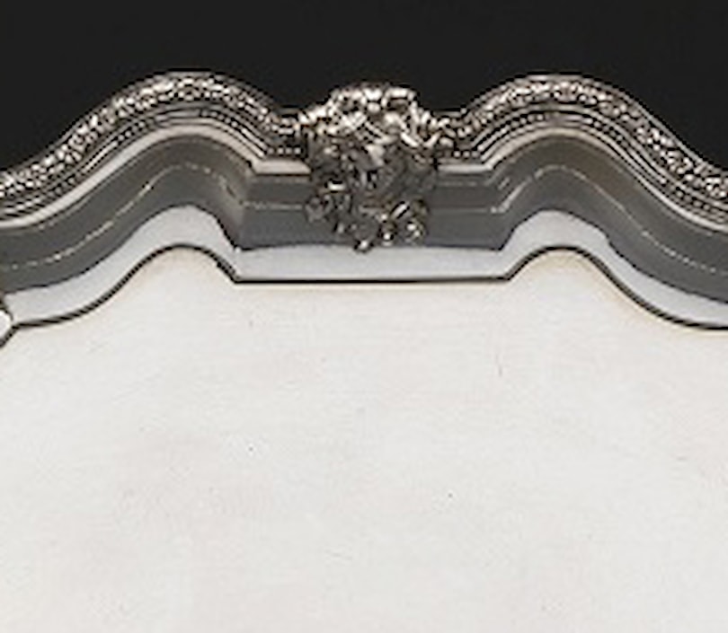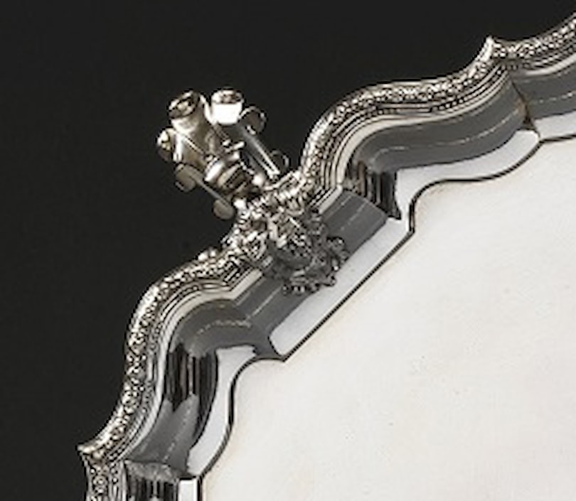 An identical cartouche, attributed by Charles Oman to Joseph Sympson, appears on a salver of 1733, maker's mark of Thomas Farren, in the Victoria & Albert Museum, illustrated in English Engraved Silver, 1150-1900, 1978, p. 90, fig. 103. A small number of objects survive with engraving signed by Sympson, much of it in vastly differing style, suggesting that he ran one of the most successful engraving workshops in London during this period. An "S. Sympson" (probably Joseph's son or nephew) published A New Book of Cyphers, More Compleat & Regular than ever Publish'd in 1726 (see Christopher Hartop, "Engraving on English Silver", Antiques, February, 1997, p. 343).