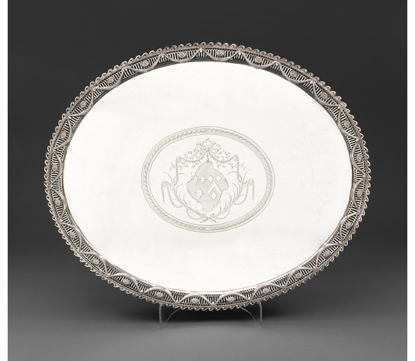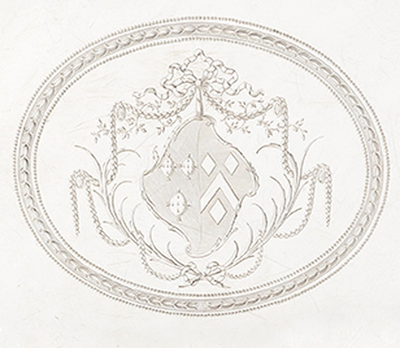 Son of Richard Rugg late of Limington in the County of Somerset husbandman deceased, apprenticed to James Gould 10 January 1738 on payment of £25. Free, 3 September 1746. First mark entered as largeworker, 30 May 1754. Address: Caroline Court, Saffron Hill. Moved to Clerkenwell Green, 15 July 1754. Appears as plateworker, St. John's Square, Clerkenwell, in the Parl. Report list 1773. Second mark as plateworker, 18 March 1775. Address: St. John Square. Heal records the Saffron Hill address and date, and St. John's Square, 1766-75. His son Richard was apprenticed to his father 2 November 1763, free 7 November 1770. Livery, December 1771, and died between 1795 and 1801. It has in the past been considered impossible to distinguish between the marks of Rugg and Robert Rew (q.v.). The size of the only similar mark which each entered is, however, so widely different from the other that there need be no doubt in the matter.