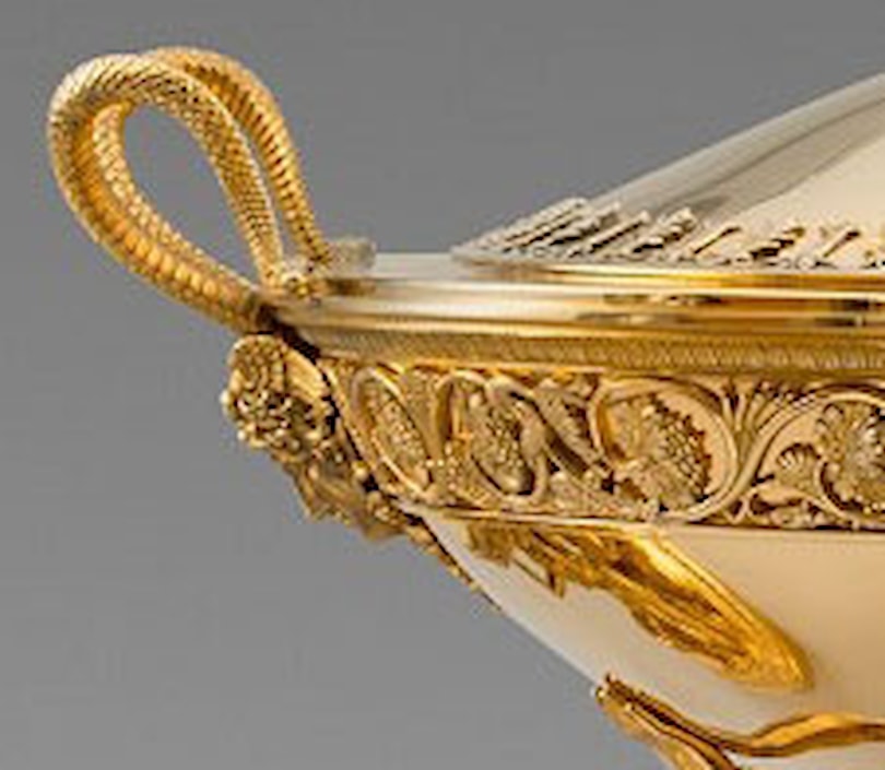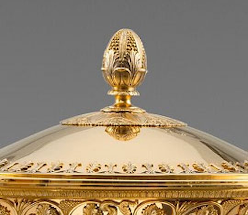 Odiot's work during this period is characterised by strong neoclassical forms, ornamented with cast figural elements, attached not by the traditional soldering but with the use of bolts and rivets, a method he inherited from his collaboration with the bronzier Pierre-Philippe Thomire (1751-1843). Having survived the French Empire as well as the Bourbon monarchy, Jean-Baptiste-Claude Odiot retired in 1823 passing the business to his son Charles-Nicolas.