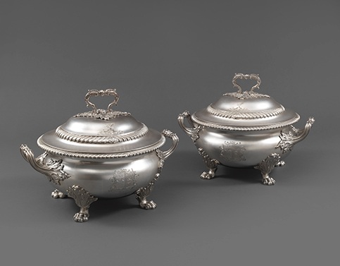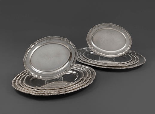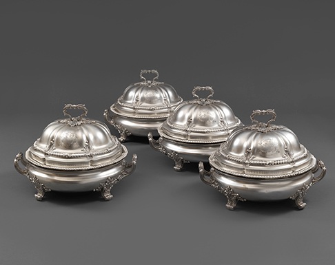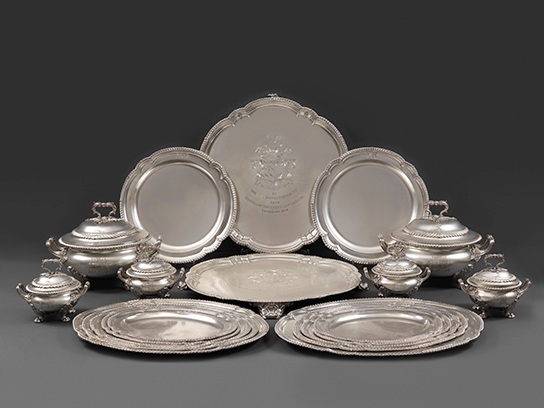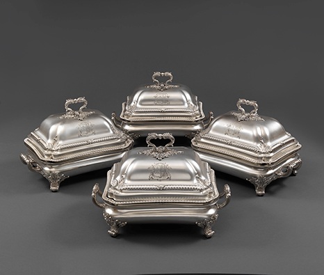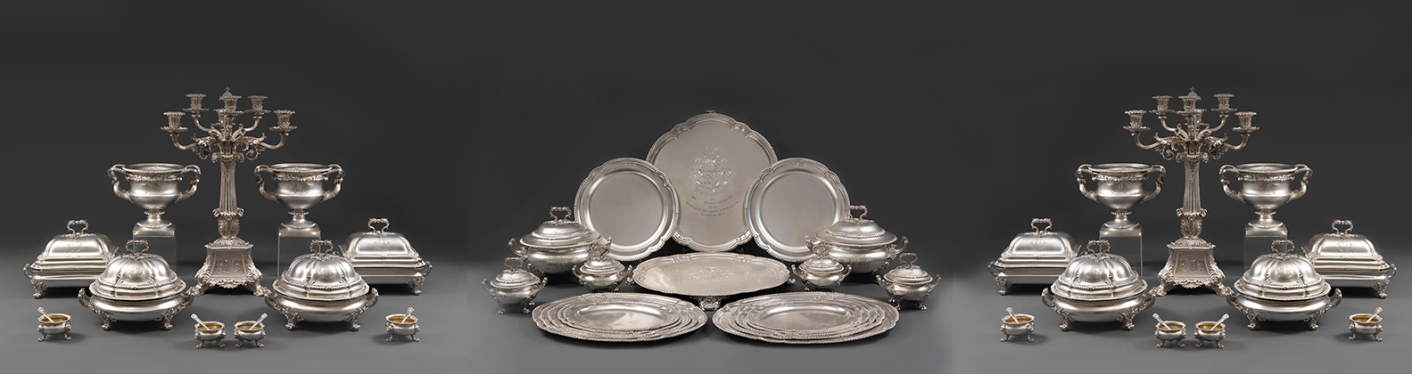 Complete dinner services from any period in English silver are extremely rare, and with the exception of the one made for the Earl of Egremont of Petworth and another made for the Duke of Norfolk, this is the only service by Storr to survive more or less complete.