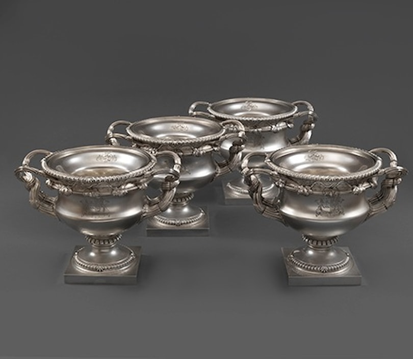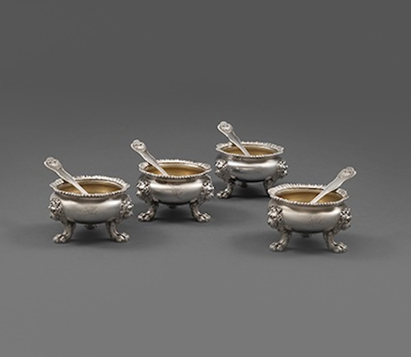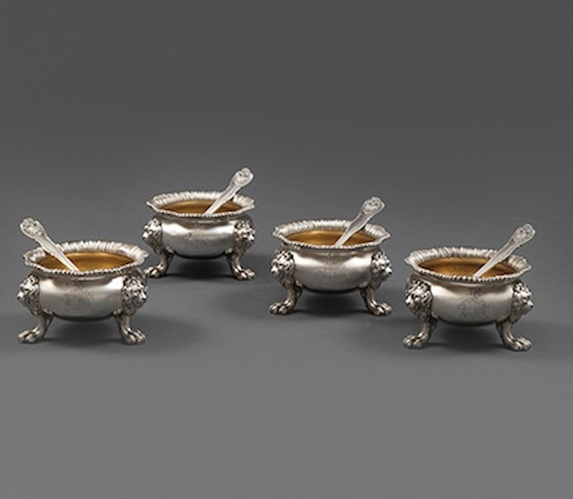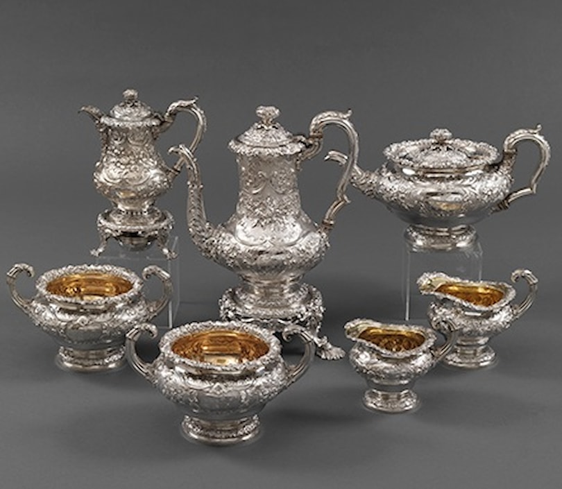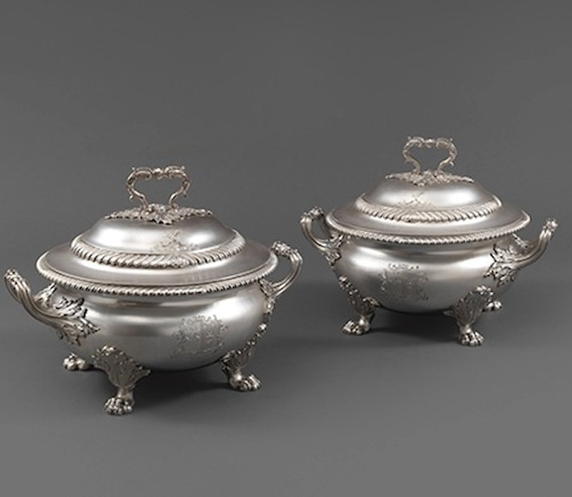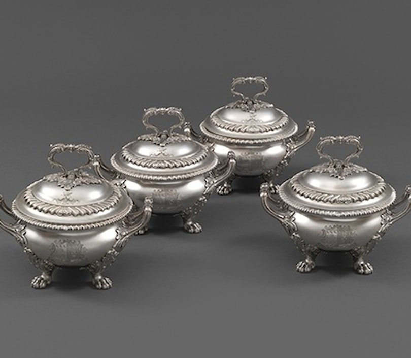 Complete dinner services from any period in English silver are extremely rare, and with the exception of the one made for the Earl of Egremont of Petworth and another made for the Duke of Norfolk, this is the only service by Storr to survive more or less complete.