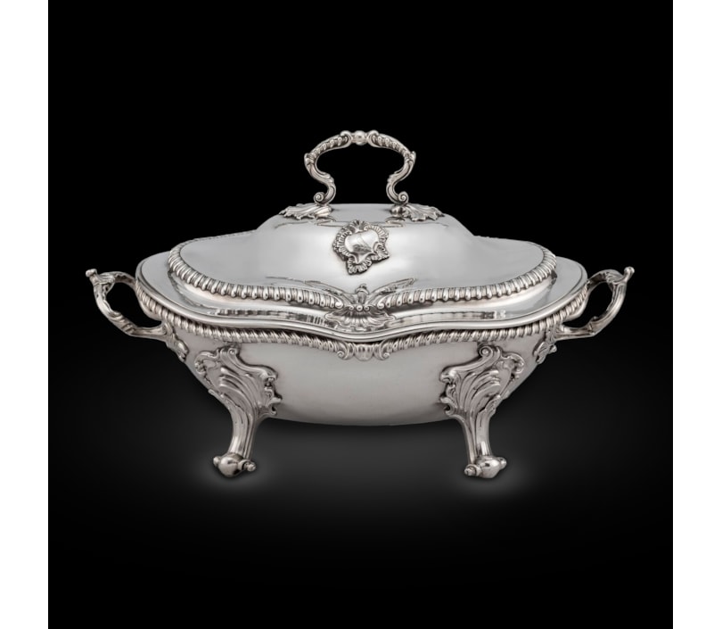 No record of his apprenticeship or freedom, or his presumed brother James, who Heal records as working silversmiths, Whitcomb Street, Leicester Fields, from 1762 to 1773; and James Crespel alone in 1779. The mark which is clearly theirs must have been entered in the missing largeworkers' register somewhere about 1760. It seems highly probable that they may have learnt their trade in the establishment of Edward Wakelin, in view of the connection revealed by the ledgers of that firm (Garrard MMS, Victoria and Albert Museum). They first appear in the general workmen's ledger in 1769 as supplying plates and dishes, which seem to constitute their greatest output throughout from 1778 to 1806 a series of parallel ledgers survive kept by the Crespels and Wakelin and Taylor and their successors. These record the raw metal used issued by the Crespels and the wrought plate supplied back by them, annotated with the client's name for whom ordered, or the word "Shop", presumably for stock in Panton Street. In 1782 a definite financial connection between the Crespels and Wakelin and Taylor occurred, when the latter paid £380 for 'expenses, alterations and improvements done by them at the workshop no 25. Corner of Oxendon Street'; they further bought 'an annuity of £100 per Annum on both their lives and the survivor' for £1000 and lent them £1321.7s.3d. 'by their Joint Bond bearing 5% pr Annum with collateral security of all their Tools, Fixtures and Implements in Trade of all denominations'. It would seem therefore, that from this date, the Crespels were virtually owned by Wakelin and Taylor, and likely that all pieces bearing their mark went through the latters' hands. From 1788 the latters' ledger account is headed 'James Crespel', which may indicate Sebastian's death or retirement. The ledgers finish in October 1806 without any apparent successor to the business. James Crespel had at least four sons he apprenticed in the trade