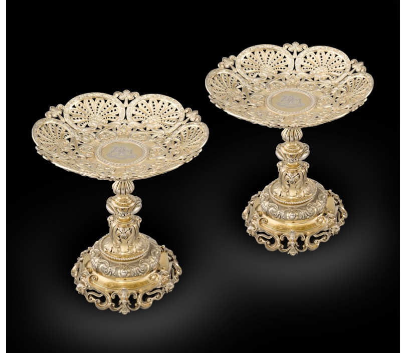 The design of these comports were a form produced almost exclusively by the Garrard silversmith company and should be recognised as a specific design unique to the repertoire of their maker. These comports take their design and inspiration from the Renaissance period.