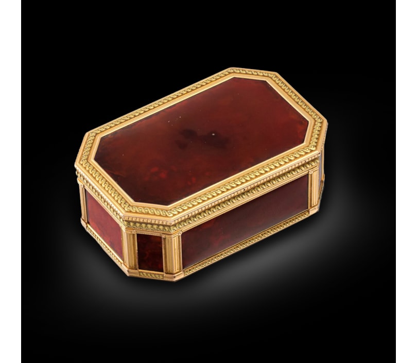 A.J.M Vachette was born in Cauffry on the 19th June 1753 and at the age of twenty-six he became a master, sponsored by Pierre-François Drais, on the 21st July 1779. At that date he was living in the place Dauphine in Paris, near the Pont-Neuf. After the revolution he is recorded in 1805 at 3 quai de l'Horloge, in 1806 at 45 quai du Nord, in 1810 at 45 quai de l'Horlogeand by his death on the 23rd September 1839 in the rue Chanoinesse. During his long career, both before and after the French Revolution, Vachette was associated withMarie-Etienne Nitot, jeweller to Napoleon I, and with Charles Ouizille, who supplied jewels to Louis XVIII and Charles X. Vachette was also the master of Jean-Valentin Morel, chef d'atelier of the goldsmith Fossin who supplied Prince Anatole Demidoff. While Vachette's early work resembles that of his master P.F Drais, his inventive use of materials to decorate boxes drew on an exceptional canon, which included hardstones, both European and Oriental, micro-mosaics, tortoiseshell, Japanese lacquer, miniatures and Roman glass.