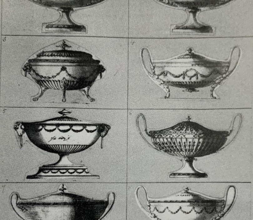 Drawings of soup tureens based on designs by James Wyatt (1746-1813), from Boulton & Fothegill Patter Book no.1 Birmingham Archives and Heritage, MS 3782/21/2.