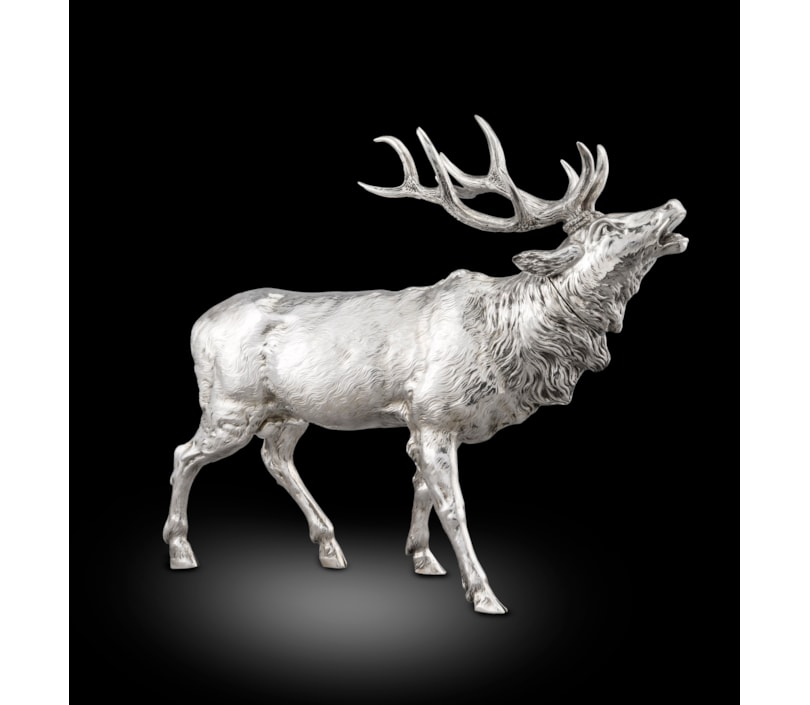 The model realistically chased as a baying royal stag with detachable head. The piece hallmarked on bezel, with Vienna import marks for 1872-1901.