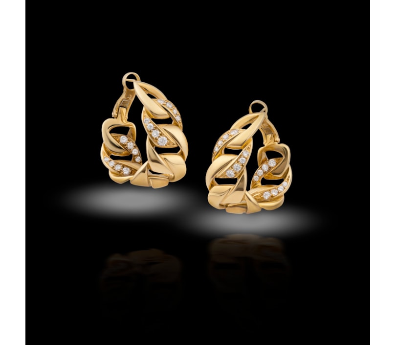 Each designed as a hoop composed of curb linking, accented with brilliant-cut diamonds.