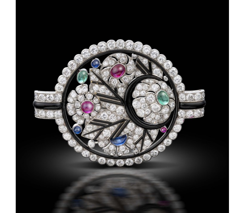 Art Deco multi-gem-set and enamel brooch, circa 1925