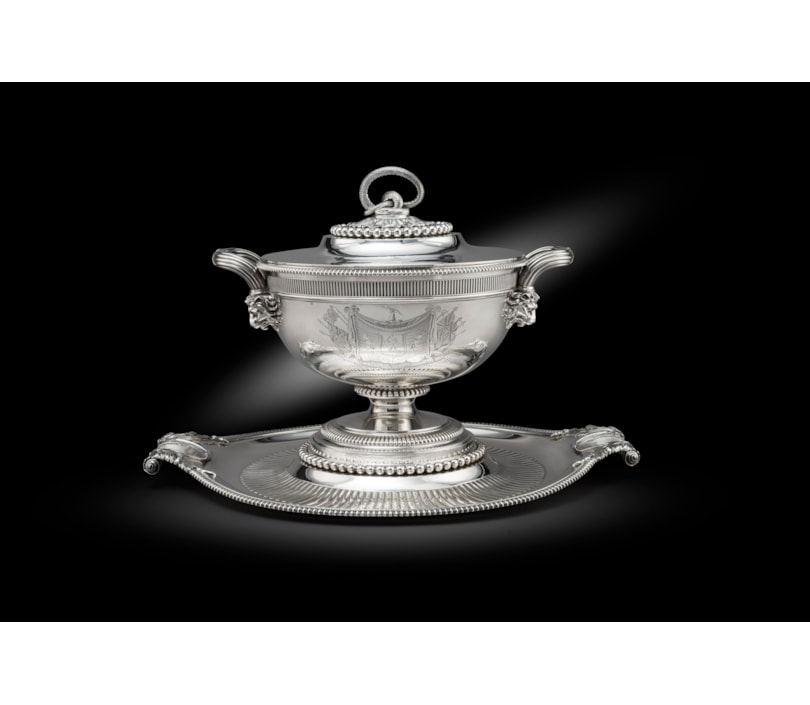 Son of Thomas Storr of Westminster, first silver-chaser later innkeeper, born 1771. Apprenticed c'1785. Before his first partnership with William Frisbee in 1792 he worked at Church Street, Soho, which was the address of Andrew Fogelberg. This is also the address at which Storr's first separate mark is also entered. First mark entered as plateworker, in partnership with William Frisbee, 2 May 1792. Address: 5 Cock Lane, Snow Hill. Second mark alone, 12 January 1793. Address: 30 Church Street, Soho. Third mark, 27 April 1793. Fourth 8 August 1794. Moved to 20 Air Street, 8 October 1796, (where Thomas Pitts had worked till 1793). Fifth mark, 29 November 1799. Sixth, 21 August 1807. Address 53 Dean Street, Soho. Seventh, 10 February 1808. Ninth, 21 October 1813. Tenth, 12 September 1817. Moved to Harrison Street, Gray's Inn Road, 4 March 1819, after severing his connection with Rundell, Bridge and Rundell. Eleventh mark, 2 September 1883. Address: 17 Harrison Street. Twelfth and last mark, 2 September 1833. Heal records him in partnership with Frisbee and alone at Cock Lane in 1792, and at the other addresses and dates above, except Harrison Street. Storr married in 1801, Elizabeth Susanna Beyer of the Saxon family of piano and organ builders of Compton Street, by whom he had ten children. He retired in 1838, to live in Hill House in Tooting. He died 18 March 1844 and is buried in Tooting Churchyard. His will, proved 3 April 1844, shows an estate of £3000. A memorial to him in Otely Church, Suffolk was put up by his son Francis the then incumbent of the parish. For full details of Storr's relationship with Rundell, Bridge and Rundell please see N.M. Penzer, 1954 or Royal Goldsmiths, The Art of Rundell and Bridge, 2005.