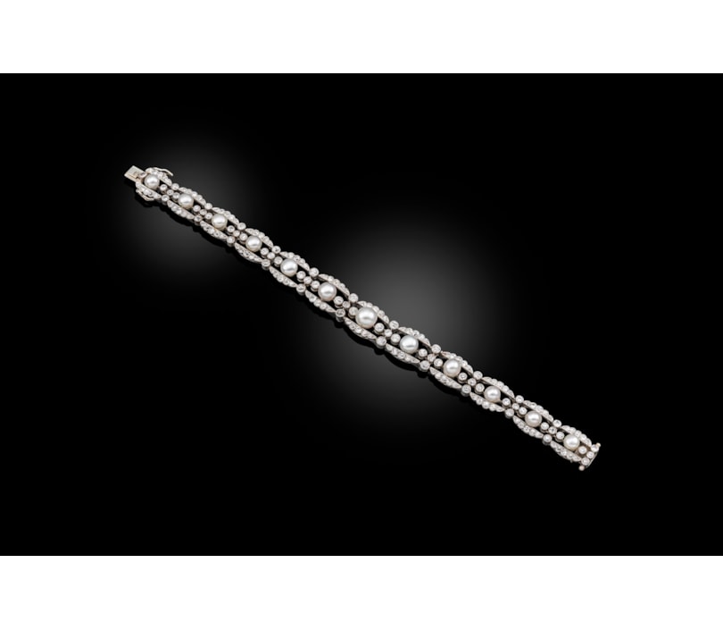 An Early 20th Century Diamond and Natural Pearl Bracelet