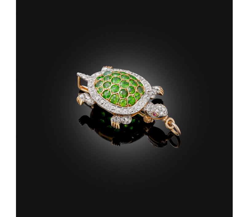 A Demantoid garnet and diamond tortoise brooch, circa 1890