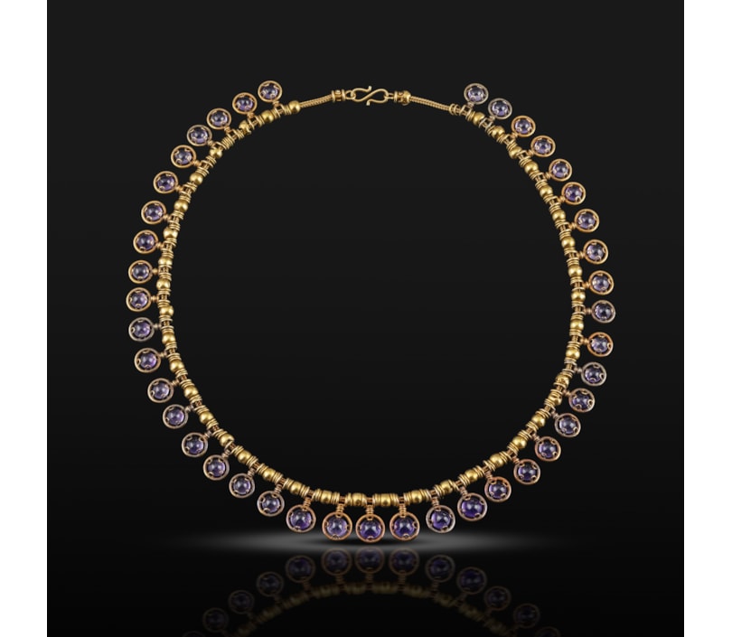 Archaeological Revival gold and amethyst necklace, circa 1870