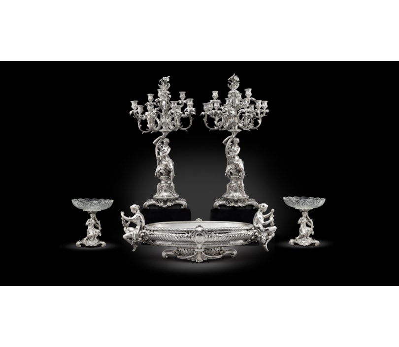 Charles Nicolas Odiot experimented with electroplating, a new technique he brought back from England in 1824. He worked in the revived rocaille style and by 1825 he was purveyor of silverware by appointment to His Majesty the King Louis-Philippe and to the Royal Family of Orleans. Charles Nicolas was succeeded by his son Gustave who revived the largest order placed with the House of Odiot, 3,000 pieces of solid gold flatware from Saïd Pacha, the Viceroy of Egypt. Gustave went on to become the purveyor by appointment to the court of His Majesty the Tsar.