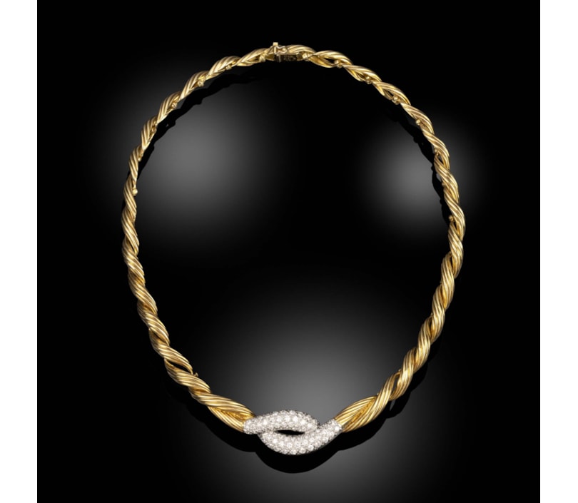 of twisted rope design culminating in a slightly open cross over section set with round brilliant cut diamonds. Set in gold and platinum. Signed VCA and numbered.
