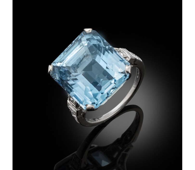 An art deco aquamarine and diamond ring