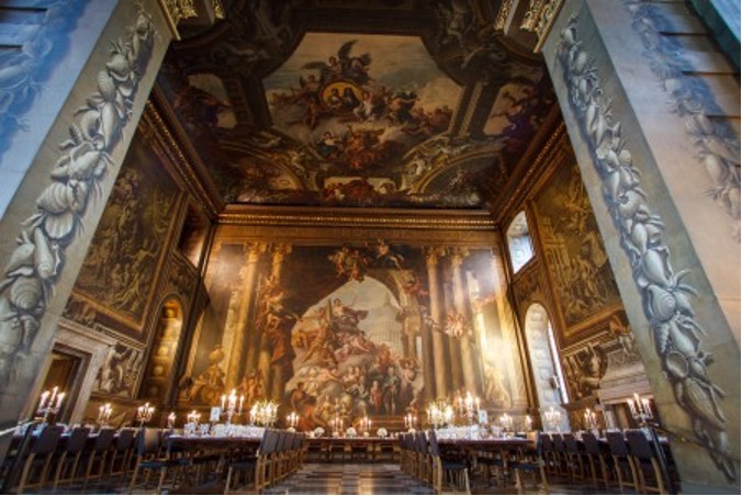 An image of the set of Candelabra in situ at the Painted Hall in Greenwich.