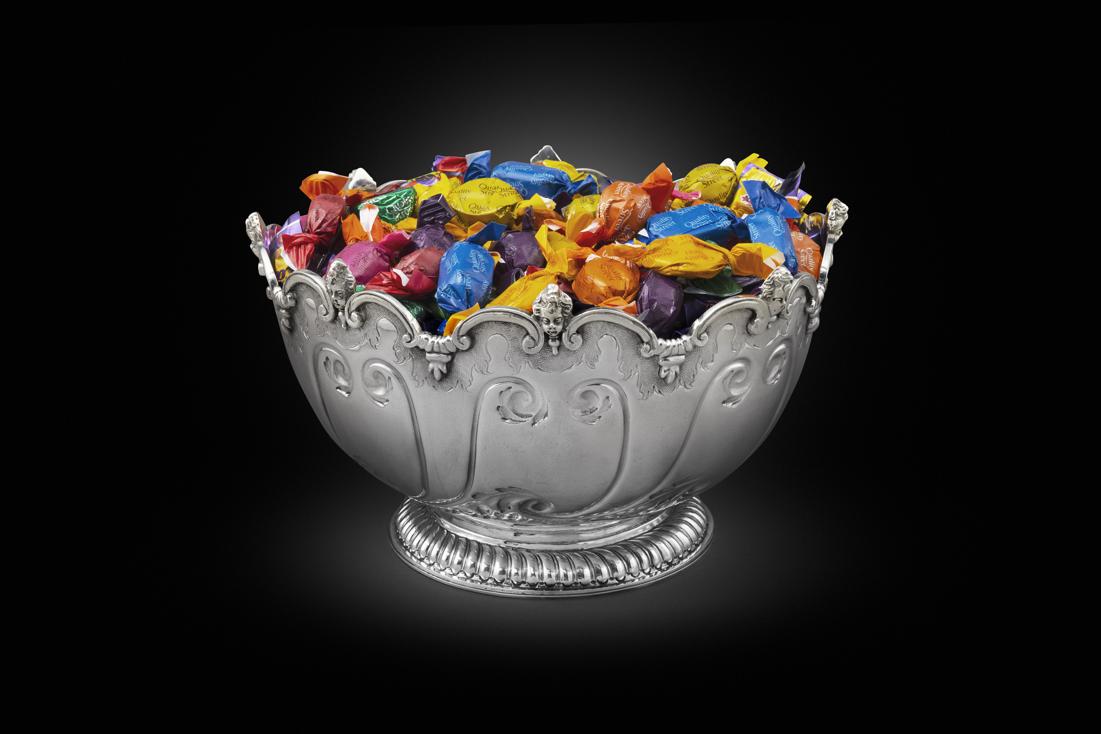 London 1695 1424g (45.8 oz) Jackson pg 148 With a scroll border with masks at intervals, the body with foliate scroll panels and on a gadrooned circular pedestal foot